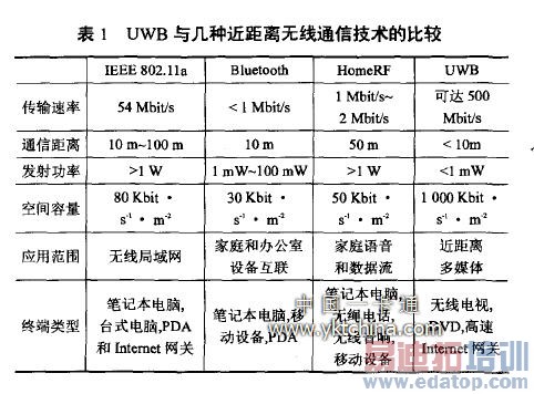 UWB与几种近距离无线通信技术的比较