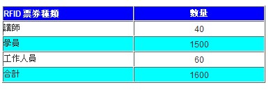 为期5日的IDEAS Week,共有30场次的系列讲座,为达表1所列应用目的,我们共实测了1600张的RFID票券,如表2所示。