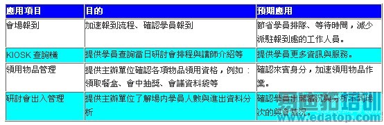表1、会展RFID应用系统于IDEAS Week之目的与预期应用