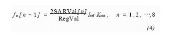 利用以上的参数,参考相关的锁相环理论[7],建立了环路模型,如图4所示。其中RegVal是SAR改变取值的阈值,Comp是比较模块,SAR是逐次逼近寄存器,Conv是数字控制字到偏置电流的变换,Ibias是用于控制振荡器频率的偏置电流,Kcco是振荡器的电流控制增益。计数器对N分频以后的频率进行计数,然后和RegVal进行比较。当每一个数字校准周期到来时,振荡器的输出频率为