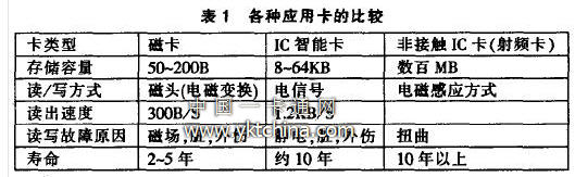 从光电卡到磁卡、接触式IC卡到现在普遍采用的感应式IC卡(又称射频卡),各种应用卡(见表1)发展迅速。