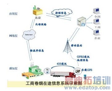 行业物联网较为典型和成功的应用案例,是目前由中烟电子商务公司牵头委托上海烟草(集团)公司的工商卷烟物流在途信息跟踪系统(下称“在途系统”)。该系统是站在行业整体物流信息化建设的高度,针对行业干线物流(工业到商业)“多对多”的送货模式(商业到零售户是“一对多”模式)建设的。为了避免工业企业重复建设和投资,为进一步整合干线物流资源,满足行业工商协同信息交换需求,搭建行业统一的工商在途物流信息跟踪平台是非常必要和亟须的。该系统称得上是一个较为系统的行业级物联网闭环应用系统。系统如同物联网架构一样共分三层: