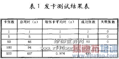 在测试过程中,根密码和母密码的产生采用分段密码产生和保存机制,在应用过程中难以复制,也在一定程度上杜绝个别人为的不安全因素。而且可以根据应用来制作不同业务的母卡,不同业务之问如果未经授权是不能够互访的,这样也系统的安全的分层管理。在加密算法中,在3D ES算法的基础上增加了分散算法和随机算法,并在加密解密过程进行分散操作,增加r解密的难度,提高了密码的安全性。并且系统具有良好可实现性和性能,表l是发卡的时间统计表。从统计表中可以得出该密钥管理系统能够适应较大规模的发卡应用。