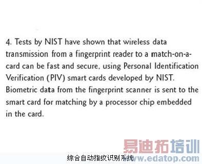 然而,指纹仍然是一个有效ID方法。美国联邦调查局使用综合自动指纹识别系统作为刑事逮捕和执法的数据库。此外,美国国家标准与技术研究所(NIST)将提供其基于指纹的个人身份验证(PIV)智能卡给进入联邦设施的所有联邦雇员和承包商(图4)。