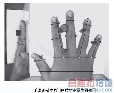 密歇根州立大学的研究人员正在研究在手掌识别生物识别技术中图像的效用。图像采集系统包括了一个光源、一个照相机、一面单一的镜子和一个其上具有5颗钉子的平面(图5)。