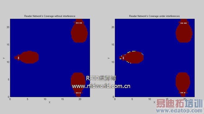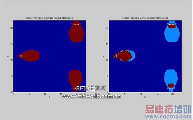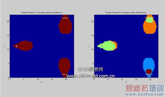 图9是当3个reader工作在发射功率为2W,信道相同的情况下得到的区域分布图。