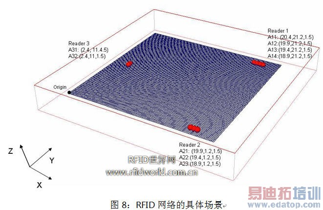 利用以上仿真得到的结论,我们考虑一个具体reader部署方案的性能。