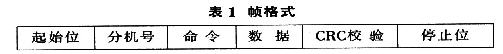 通信协议是网络正常工作必不可少的,主要是对计算机和节点终端设备间通信帧格式的具体规范与统一,例如帧长度确定、命令字意义、参数长度、帧起始标志、结束标志等。具体帧格式规定如表1所示。每帧数据有23字节,其中起始位1字节,固定为Oxaa;分机号1字节,可设置范围为0~255;命令1字节,包括5个命令:OxOf、Ox2f、Ox4f、Ox8f、Oxaf,依次为发送数据命令、写数据命令、时间设置命令、功率设置命令、写分机号;数据17字节,包括标签数据12字节和时间数据5字节;CRE校验采用CRC-16,共2字节,是起始位到数据位之间所有数据的CRC校验值;停止位1字节,固定为Ox55。