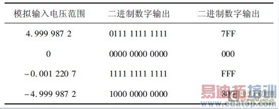 由表1 可知,MAX1272 输出的数字量最高位是符号位,余下的11 位是数据。负数以补码的形式给出。