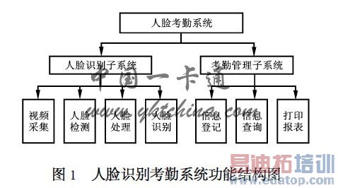 人脸识别考勤系统分由人脸识别子系统和考勤管理子系统组成,其功能结构图如图1 所示。