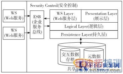 共享数据中心的主要功能是共享应用系统间的公共数据,实现系统间的数据同步。共享数据中心与一卡通相关的多个应用系统互联,必须降低与各个应用系统的耦合性,同时考虑到以后新建系统的加入,还必须保证共享数据中心的可扩展性。根据共享数据中心构建的这些特点,这里提出了一种基于soa的共享数据中心技术方案,它把业务划分,组件化,为一系列粗粒度的业务服务和业务流程),通过加入ESB支持以及各种数据接口来实现,能实时地实现共享数据中心与各应用系统之间的数据同步,实现共享数据中心各应用系统之间的低耦合性和共享数据中心本身的可扩展性,以满足当前数字校园建设的需要)。基于SOA的共享数据中心技术方案如图2所示。