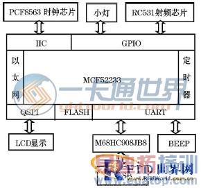 M CF52233是飞思卡尔公司推出一款主要用于工业控制的32位芯片[ 1] , 具有稳定性好、可靠性高、接口丰富、存储空间大等优点, 并且集成了网络模块, 已经广泛应用于工业控制领域。射频识别是一种非接触式的自动识别技术, 目前已广泛应用于物流、制造、公共信息服务等行业[ 2]。