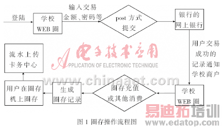 目前我国高校的校园卡圈存通常采用传统圈存技术,传统技术接入方式是以太网控器作为接入设备,通过圈存机将交易报文在银行系统和校园一卡通系统中的卡务管理中心子系统之间进行传送,银校圈存系统通过银行卡与校园卡一起插入转账圈存机以达到把用户的银行卡账户下的金额划入校园卡账户中为目的[1],传统圈存方式的圈存机具有价格昂贵、位置移动不灵活、设计复杂、故障率偏高等不足,而且经常会出现银行和学校交易流水账务不一致的情况;同时,该模式下的学校与银行的实时通信信道需向通信部门租用一条专线,增加了工程的设计成本与维护费用。鉴于此,在计算机比较普及和计算机网络高度发展的今天,结合高校的实际情况,笔者探索出一种全新的圈存思路和设计,实现校园卡单卡圈存(即圈存时仅使用校园卡),设计一种基于WEB圈存的方式以克服传统圈存方式的不足,大大降低了系统的开发和材料成本,使其设计与应用真正做到经济、简单、方便、实用和圈存机移动、接入方便。