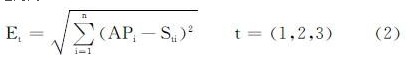 假设有n个AP,m个参考标签,则AP点接收到的待定标签的强度量P=(AP1,AP2,…,APn),采集到的第t个参考标签的强度矢量为St=(St1,St2,…,Stn),则待定标签和参考标签St之间的欧氏距离为:
