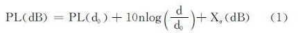 式中:n为路径损耗指数,与周围的环境有关;Xσ是标准差为σ的正态随机变量;d0是参考距离,在室内环境中通常取1 m;PL(d0)为参考位置的信号强度。