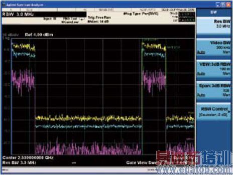 对于GSM波形,在进行连续测量时,设计人员可以利用分析仪的相关触发特性来改变设备的输入信号电平,而不必重新设置频谱分析仪的触发电平。