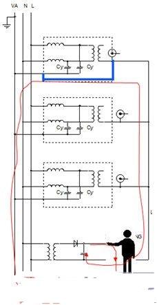 因为我们只作安全连结性的分析,因此设备模型只看输入输出,简化了其余部分。大多数的电气测量设备都是与输入电源隔离的,而我们的被测样品可能是直接整流,也可能有隔离电源,这里为了方便分析,我们统一视作从输入电源直接整流而来。另外值得注意的一点是示波器的无源探头的地是和输入线的地是连通的。