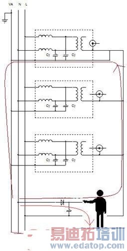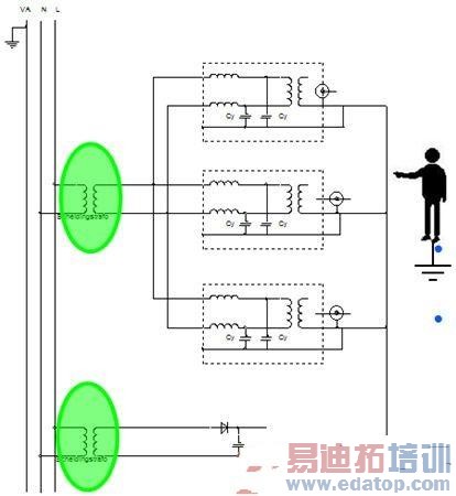 首先一点,双线触电,同时接触两个带电点总是危险的,不能被可靠的保护。而单线触电,即工作中无意中碰到带电部分,通过我们的安全设置,是可以保证安全的。这里还有一个前提是我们和大地是相连的(不要依赖大地的绝缘,因为不是每处每刻都相同的)。