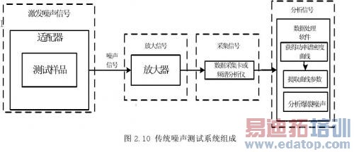传统低频噪声测试方案是一套同时基于软件和硬件平台的测试系统,需要专业的测试软件和测试硬件协同来完成测试工作。硬件模块主要包括前端适配器、放大电路和数据采集设备。软件主要包括数据采集软件模块数据分析软件模块。