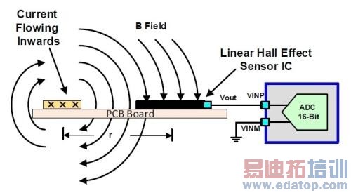 μ0是磁场的磁导率。自由空间的磁导率值μo等于4π*10-7 H/m.值r是电感与线性霍尔效应传感器之间的距离(米)。变量I是导体的电流。B是磁感应强度(单位:高斯)。