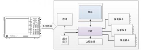由功率分析仪的功能需求可以确定,功率分析仪的系统结构,如图4所示,主要由采集板卡和主板组成,采集板卡实现单相输入的采集,包括一个电压通道和一个电流通道,主板主要实现显示和通讯功能。