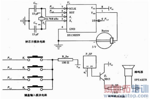 图6 键盘、时钟及报警电路设计