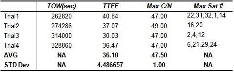 根据初始的"Off-the-air"结果,则可发现GPS接收器在标准的3秒误差内,可达到33.2秒的TTFF.这些测量结果均位于TTFF规格的容错范围内。而更重要的,即是可透过仿真与记录的GPS数据,进而比较测量结果与实际结果。