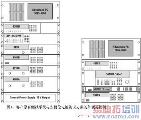 基于以上的测试方案,2007年安捷伦推出新一代锂离子电池测试解决方案。新方案大量使用最近几年内推出的LXI(LAN Extensions for Instrumentation)系统测试仪器,这些LXI仪器与传统产品相比,通过网线组建系统,简化了系统集成的难度,提高了测试速度,而且大幅度减低了系统体积和组建成本。系统中各台仪器通过网线或GPIB电缆与计算机连接,组建成为基于LXI平台的混合测试系统,整个系统高度仅14U。在一些手机电池生产厂商的实际应用中,客户告诉我们,与他们原有的测试系统配置相比,新的解决方案使系统体积缩小超过1/3,成本缩减1/4以上,而测试速度也有10%左右的提高。另外更小的机箱体积,更简洁的系统连接以及开关电源带来的更小的电源功耗,也带来了许多的额外好处。