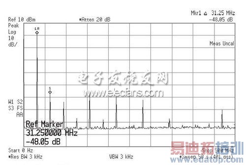 通过相关的GPIB接口总线对设备的控制指令控制频谱仪,可以使频谱的捕捉在4秒钟内完成,整个测试流程在1分钟内完成,有效地节约了测试时间。在多片测试中,测试员启动批处理文件就可以完成快速测试流程。对比传统测试方案,该方案不需要反复更换测试仪器探头及调试测试仪器,只需要更换开关电源及待测芯片即可。