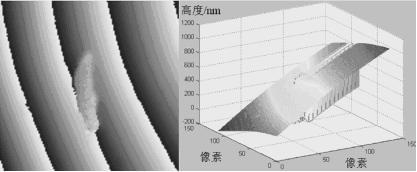 然而,MEMS/NEMS结构经常具有比较复杂的轮廓,含有孔洞、沟槽、突起等特征形状,被测表面也可能存在缺陷,例如表面镀膜脱落或者粘附上灰尘等,再加上阴影和噪声等的影响,用普通的相位展开方法就可能引入误差,并且误差会传播到在当前像素点之后展开的所有点。图2为使用传统相位解包裹算法对含有非理想数据点的圆形薄膜进行相位展开的结果,左边为薄膜表面的包裹相位图,右边为其相位解包裹后的表面轮廓图。