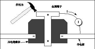 图15. 摩擦效应产生的偏移电流 应采取其他措施将运动和振动问题降至最小: 消除或机械去耦振动源,例如马达、泵,以及其他机电装置。 将电子元件、接线和电缆牢固地安装或绑好。 使前置放大器尽量靠近DUT。压电效应和电荷存储效应向绝缘端子和互连硬件中使用的特定晶体材料施加机械应力时,就会产生压电电流。在有些塑料中,少量的存储电荷就会导致该材料的行为类似于压电材料。图16所示为采用压电绝缘体的端子的一个例子。