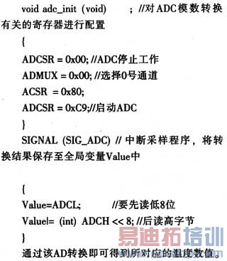 对于连续AD数据采集,可采用查询法和中断法,该程序中采用的是中断法,即一次AD转换结束后便产生中断。设计时可利用如下函数对电压数值进行采集: