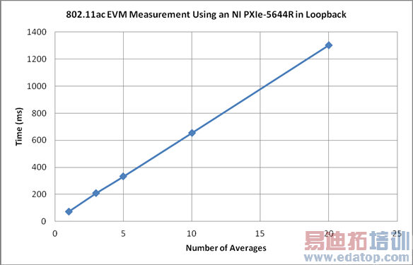 图15显示了在802.11ac中使用不同平均数执行EVM和频谱屏蔽测试所需的测试时间。
