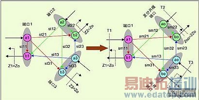 ÀíÏëÇé¿öÏ£¬¶Ë¿Ú1¼ÓÒ»µãƵ¼¤ÀøÐźţ¬ÔÚ¶Ë¿Ú2Óë¶Ë¿Ú3Ó¦µÃµ½´óСÏàµÈ£¬Ïàλ²î180¶ÈµÄÐźţ¬Ò²¾ÍÊÇ˵ÔÚ¶Ë¿Ú2Óë¶Ë¿Ú3Éϵõ½Ò»¸ö²î·ÖÐźţ¬Êµ¼ÊÉÏÔÚ¶Ë¿Ú2Óë¶Ë¿Ú3ÉÏ»¹´æÔÚ×Å´óСÓëÏàλ¶¼ÏàµÈµÄÐźţ¬¼´¹²Ä£Ðźš£Èô½«²îÄ£Ðźſ´×÷Ò»¸ö¶Ë¿Ú£¬¹²Ä£Ðźſ´×÷Ò»¸ö¶Ë¿Ú£¬ÔÙ¼ÓÉÏÔ­À´µÄ¶Ë¿Ú1£¬ÕâÑù¾Í×é³ÉÁËÒ»¸öеÄÈý¶Ë¿ÚÍøÂ磬³ÆÎªÄ£Ê½Èý¶Ë¿ÚÍøÂç¡£
