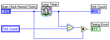 使IP代码模块定时独立于调用者的指导方针,存在一个例外:如果该IP代码模块目的在于为其调用应用提供定时功能。此类IP代码模块的例子便是一个数据采集扫描时钟例程。下面的框图展示了一个简单的IP代码模块,它实现了一个具有附加功能特性的扫描时钟,附加功能就是验证调用的应用程序是否能够满足指定的定时。这一增强的扫描时钟可以快捷运用于多个不同的应用中。在此例中,IP代码模块的操作与定时依赖性应当以文档的形式详细描述,以便该IP的用户了解其应用的定时行为将受到怎样的影响。