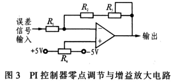 PI控制器用于滤除高频噪声,并对低频信号进行积分放大。据此功能要求,设计如图4所示的PI控制器原理图。