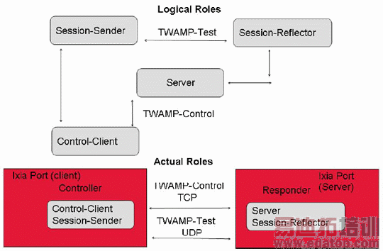 TWAMP架构由4个逻辑实体组成,包括控制客户端,服务器、UDP 会话发起端和会话回应端,这些实体负责启动监测会话和交换数据包。