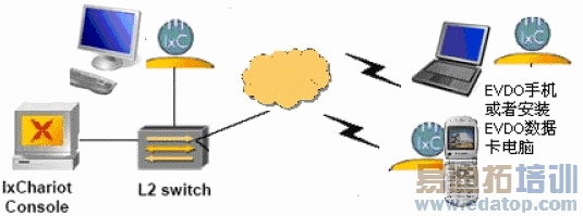 测试可以在EVDO手机、装配有EVDO数据卡的电脑或者网络中安装有IxChariot Performance Endpoint 服务器任意两点之间进行性能测试。