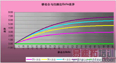 一般情况下,当移动台及扫频仪RAKE接收机使用最大合并方式工作、存在至少3路软切换、某路导频多径信号不超过4个多径情况下,扫频仪与移动台关于
