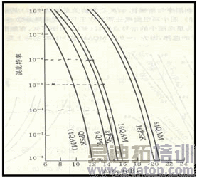 但是,我们都知道目前实际的数字调制技术还远不能达到香农极限。按照如图5所示不同调制方式下相干解调系统误比特率与 关系的曲线图,可知:
