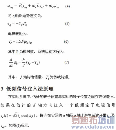 近年来,永磁同步电机(PMSM)的无速度传感器矢量控制成为研究热点。目前,PMSM无速度传感器矢量控制在中高速段已获得良好的控制性能,但在极低速段(<1Hz)却仍未实现良好的控制。这是因为PMSM无速度传感器矢量控制需要利用反电势,而反电势在极低速时很小,受电机参数变化影响较大,导致控制性能降低,无法实现极低速以及零速的无速度传感器矢量控制。