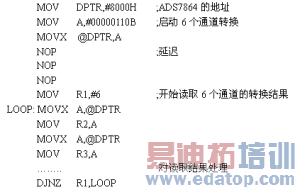 启动转换后,在读取数据前需要延迟的指令周期数需根据89C51和ADS7864的运行速度来决定。