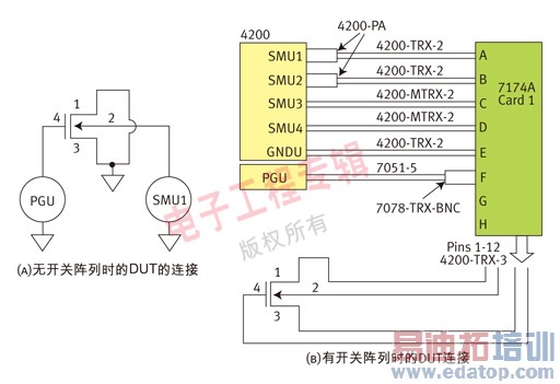 图2:DUT与4200-SCS和脉冲发生器的连接。