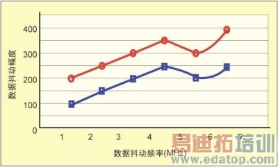曲线的产生过程是这样的:逐步增加数据抖动幅度并确定器件能够通过的最大值,通过的条件是指定时间段内不产生比特误码。不同的图形轨迹表示不同的时钟抖动频率和/或幅度。图3给出了以这种方式生成的二条曲线例子。