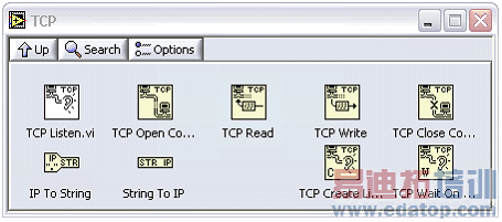 图1.LabVIEW中关于TCP的VI