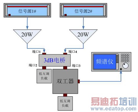图2所示为3dB电桥无源互调测试的一种测量方式。