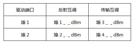 我们使用分析仪的“传输”测量模式测量3dB电桥的互调埠3的传输互调,使用分析仪的“反射”测量模式测量端口1的互调。当以埠1作为驱动端口测试3dB电桥的互调回应特性时,埠2和埠4被驱动,且端口2和埠4用一个低互调负载终止。测量结果如表1所示。完成表格的内容就可以完整的描述出工作在功率合路器模式下的器件的互调特性。