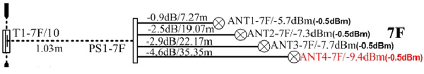 在某市,我们选择了一栋大厦进行测试,在7 楼WCDMA信号馈入PS1-7F功分器。