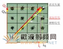 具有广义噪声的星座图如图5所示,我们在一个相当长的时间内进行测试,并按它的位置取样,当某一次符号点的位置与理想符号位置,在星座图的I、Q坐标分别为δI和δQ,而且取样次数为j,即1~N次。那么我们可以得出如下公式,这就是调制误差率MER。