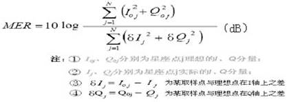 由此可知,调制误差率MER是数字电视信号的理想符号功率与噪声功率之比取对数。其单位是dB。